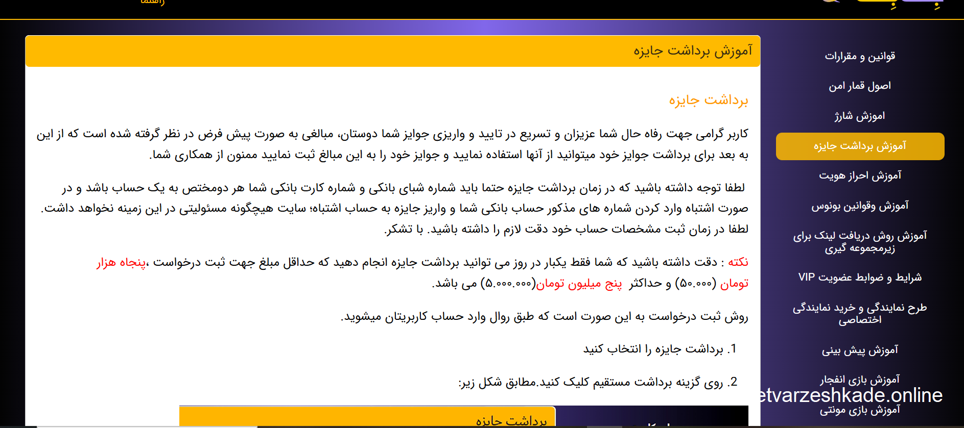 - شارژ حساب و برداشت جوایز از طریق درگاه های امن